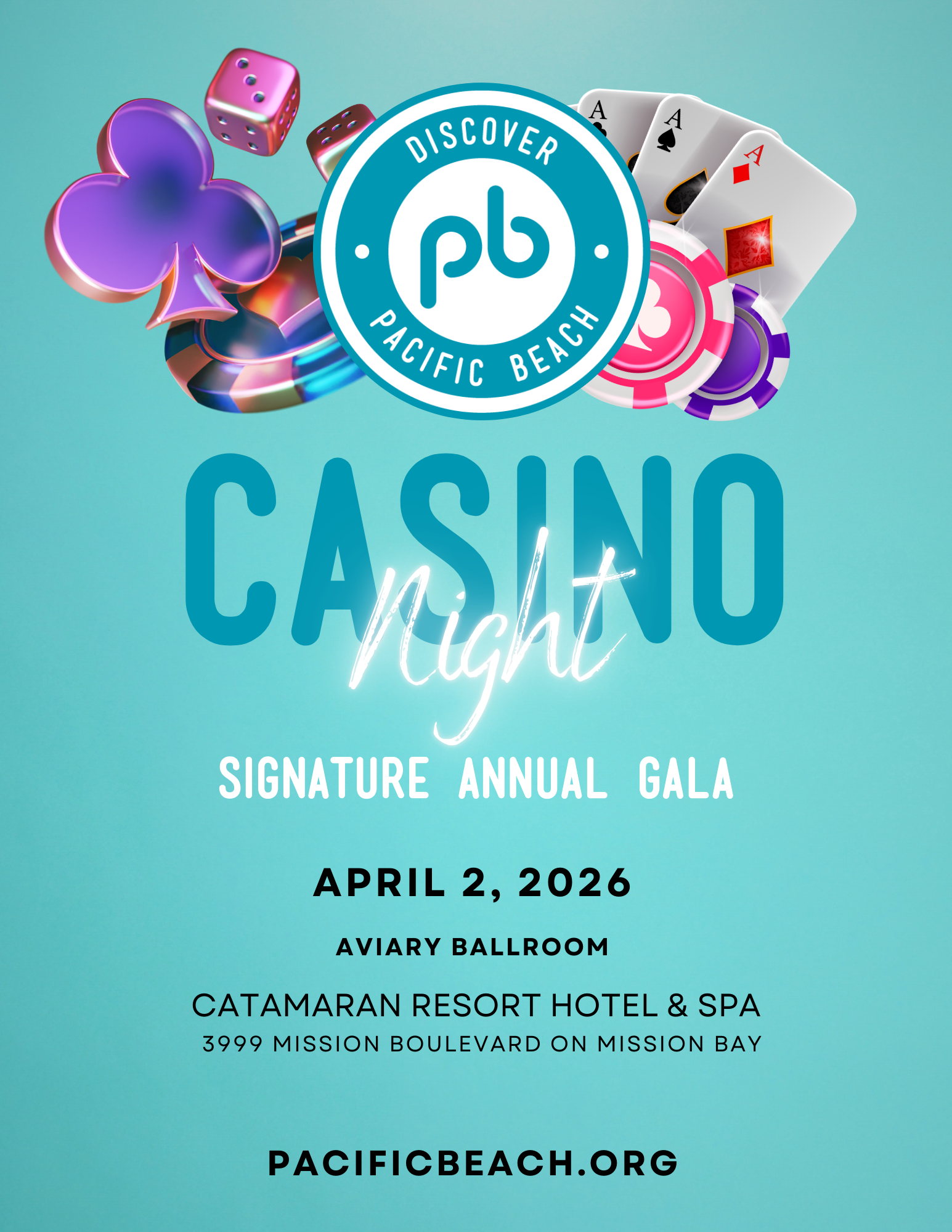 Casino Night and Signature Annual Gala: An Unforgettable Evening At The Historic Catamaran Event Details Please note, there has been a change of date and location: Date: Thursday, April 2, 2026 Location: Catamaran Hotel Resort & Spa, Aviary Ballroom Address: 3999 Mission Boulevard on Mission Bay Time: 6:00 PM - 10:00 PM Ticket Information Table... Read more »
